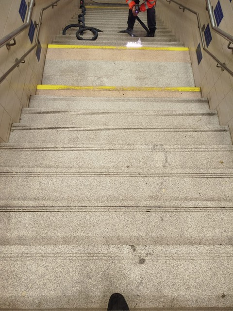 - Kompletní rozsah: strojně čistíme nášlapy (schodnice) i čela schodnic; souběžně ručně dočišťujeme nerezové kryty a skleněné bočnice.